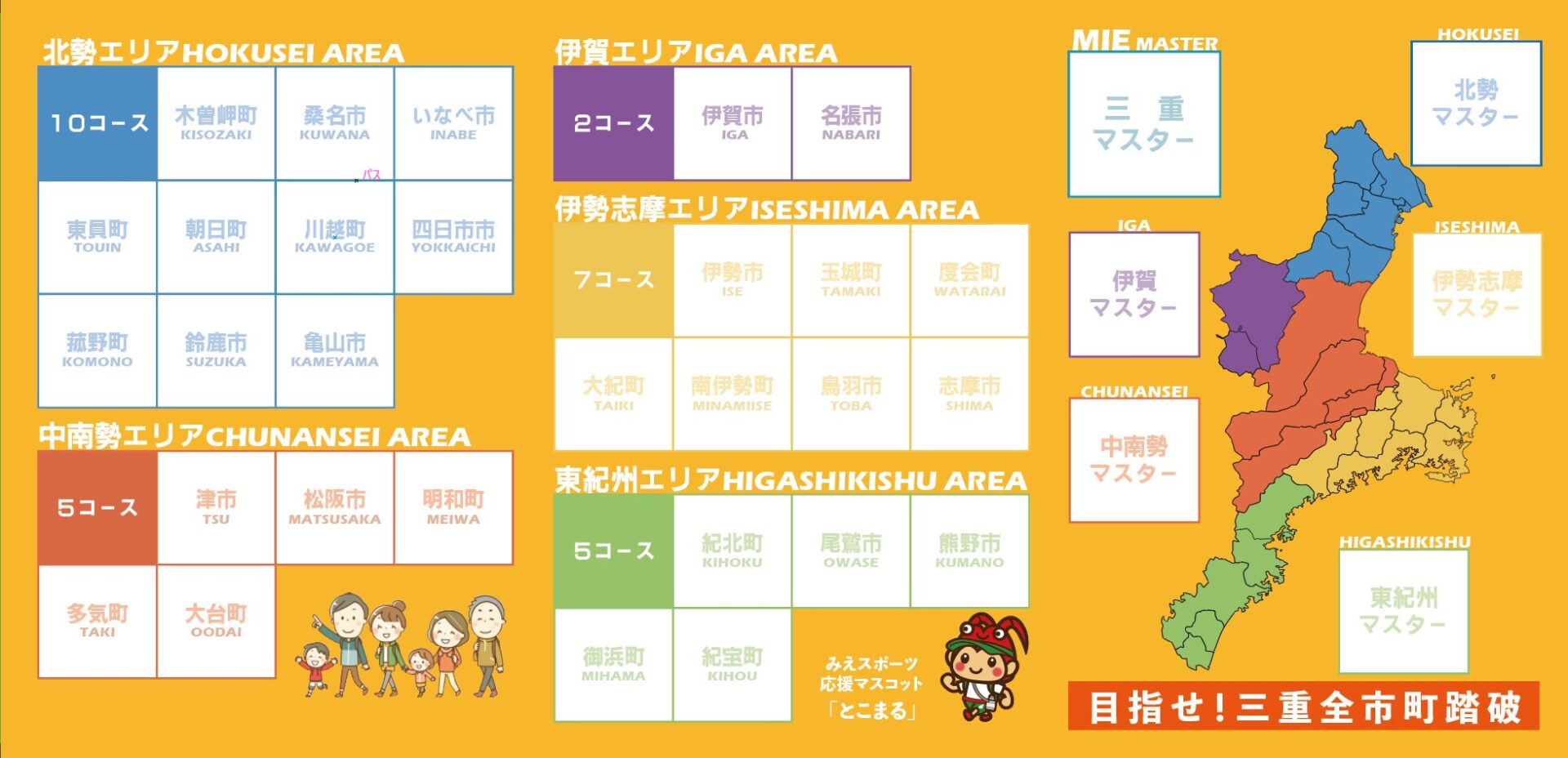 北勢、伊賀、中南勢、伊勢志摩、東紀州のいずれかのエリア内にある全市町のスタンプをすべて集めると、エリアマスターとして認定されます。